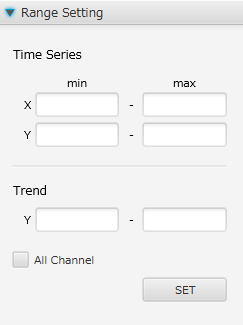 To specify the view range by numerical value, enter values in the view range settings in the property view and press the SET button. If the "Common to all channels" checkbox is checked , the view range will be applied to all channels.